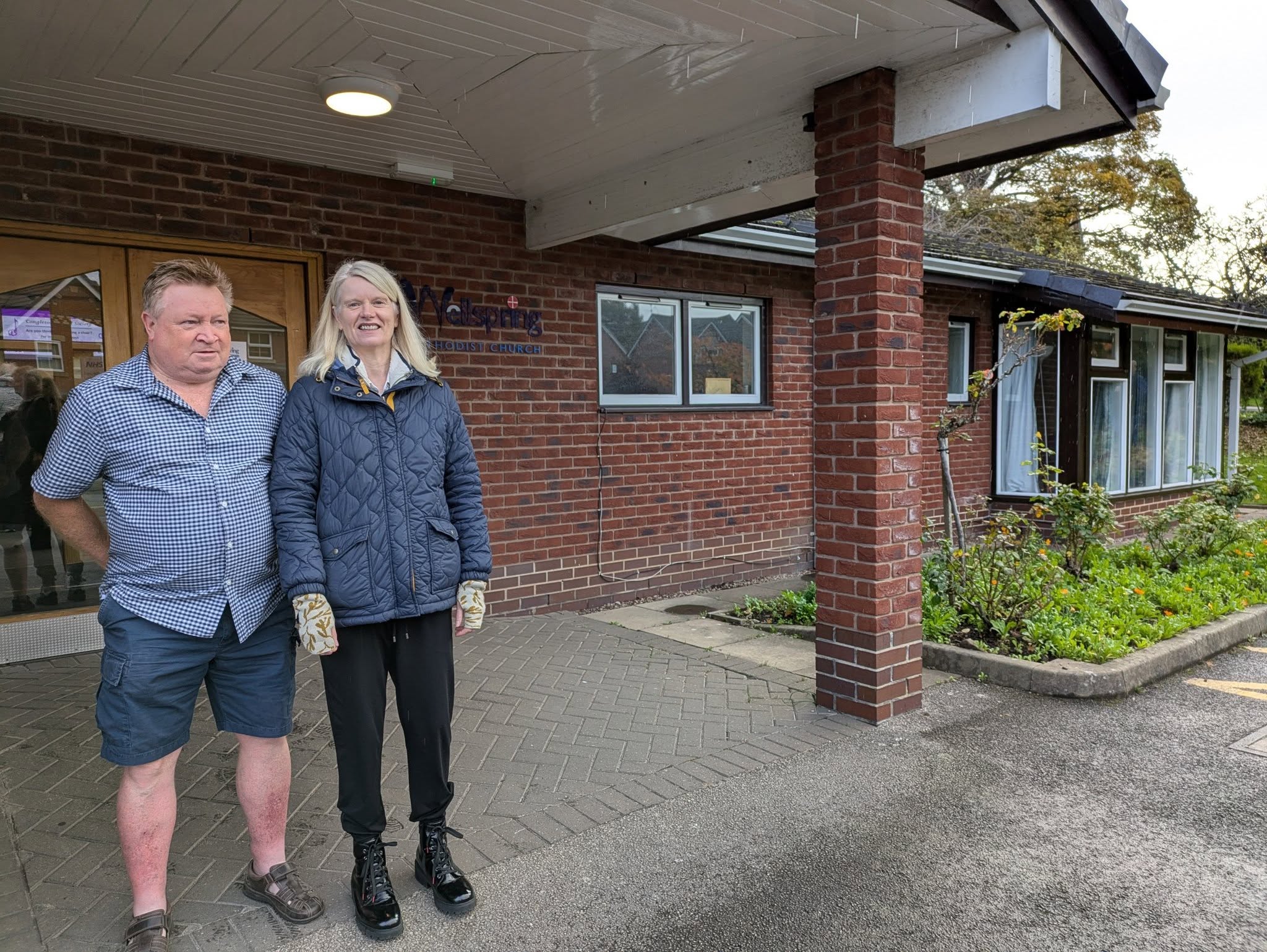 Two of our members wecoming visitors at the entrance to Wellspring Church